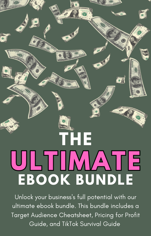 Unlock your business's full potential with our ultimate ebook bundle. This bundle includes a Target Audience Cheatsheet, Pricing for Profit Guide, and TikTok Survival Guide - everything you need to connect with your audience, create a profitable pricing strategy, and thrive on TikTok as a business owner or influencer. Whether you're just starting out or looking to take your brand to new heights, this bundle has everything you need to succeed. Order now and start your journey towards financial freedom.